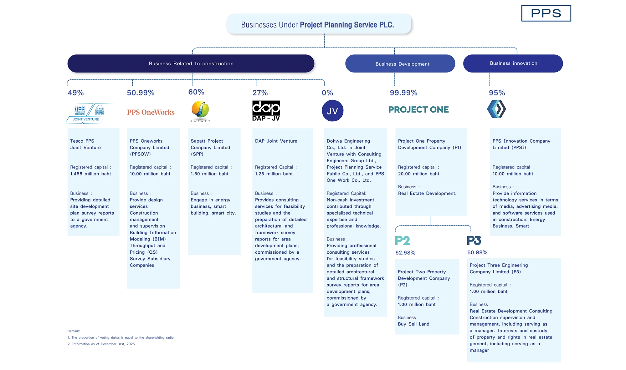 In order to grow the organization sustainably, develop the company effectively and successfully gain the business opportunities in the future, the company has become a Public Company and fundraised in MAI stock market since 2012. After fundraising in 2012, Project planning Service PLC has grown steadily both in the main business and other businesses in subsidiary and joint-venture companies. These have been in accordance with the plan to develop the Company’s capabilities beyond merely offering services of engineering advices and management of construction projects. At the moment, we have been able to offer services in various via subsidiaries and companies in various machine aspects including;